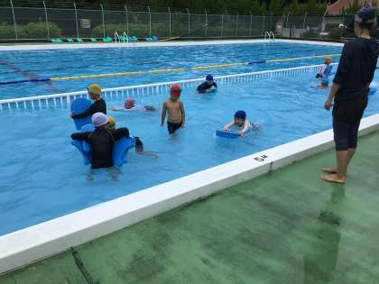 ビート板をつかって、らっこさんになったり、バタ足をしました。体が浮く感覚を楽しみました。