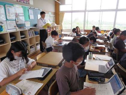 今日は、教育委員会の学校訪問がありました。子どもたちや教師の様子、学校施設や諸帳簿などを見ていただき、児童の下校後に助言をしていただきました。