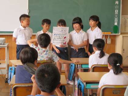 3年生は「総合の時間」に地域の昔調べをしています。その一環で、来週まちづくり協議会の方を迎えて、藤岡音頭体験週間を企画しています。