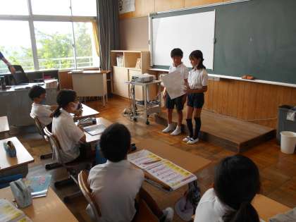 7/4 盆踊り体験宣伝 公開日 2023/07/04 更新日 2023/07/04 第3学年の様子 来週から始まる「盆踊り体験」について、各学級に説明しに行きました。初めての経験で、「緊張した!」との感想が聞かれましたが、大きな声でしっかり伝えることができました。来週、たくさん来てくれるといいですね。