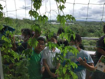 理科の「季節と生き物」の学習は夏の生き物を調べる時期になり、ベランダに植えたツルレイシを観察しています。