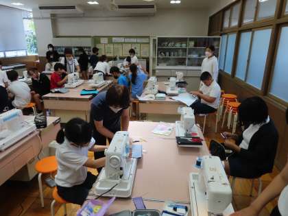 7/6 学習ボランティア 公開日 2023/07/06 更新日 2023/07/06 お知らせ 6年生の「家庭科」は、ミシンを使ってナップサックなどを作っています。 今年もたくさんのミシンボランティアの皆さんに、学習の支援をしていただいています。子どもたちの学習活動がスムーズに進み、技能の上達につながっています。