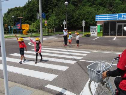 ただ左右を確認するだけでなく、のぞきこんだりして一人ひとりが安全確認をしました。