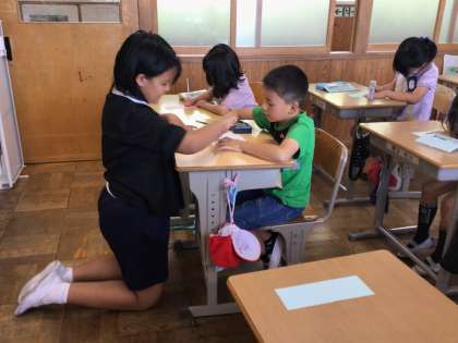 6年生が中心となって、スマイル班活動を行いました。絵本の読み聞かせをしたり、短冊に願い事を書いたりしました。