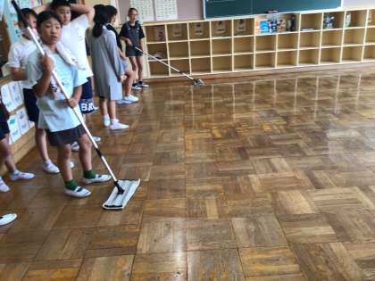 高学年で、英語ルーム、生活科室の掃除をしワックスをかけました。また、教室や学習室の掃除や整頓も行いました。