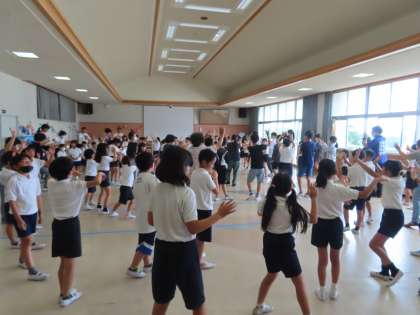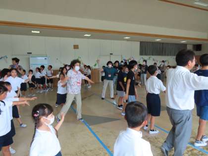7/11 盆踊り体験 公開日 2023/07/11 更新日 2023/07/11 お知らせ 今日から金曜日まで、3年生が呼びかけた盆踊り体験を午後業間に多目的室で行います。 今日は藤岡飯野地区まちづくり協議会の皆さんや地域の方が11名来校し、子どもたちと一緒に楽しく踊りました。