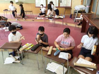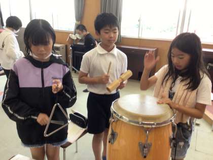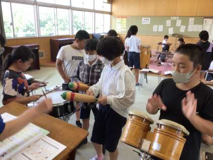 7/11 打楽器アンサンブル 公開日 2023/07/11 更新日 2023/07/11 第5学年の様子 音楽の授業で、打楽器、リズムを選んでアンサンブルをしました。 打楽器でいい音を出し、リズムを合わせる。打楽器をならす面白さでもあります。 5年