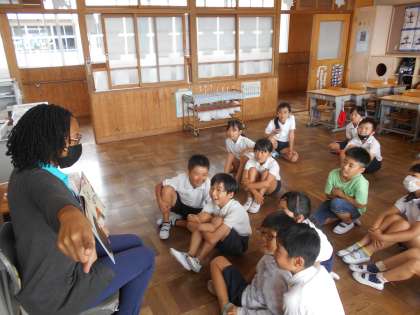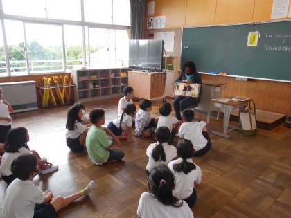 今日の「おはなしひろば」は、シャンティ先生でした。英語での読み聞かせでしたが、絵や先生のジェスチャーから意味を理解し、絵本を楽しんでいました。