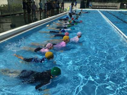 7/18 体育(水泳) 公開日 2023/07/19 更新日 2023/07/19 第6学年の様子 来年深いプールに入る2年生の、お手伝いをしました。一緒にワニ歩きをしたり、伏し浮きやバタ足の練習をしたりしました。 6年