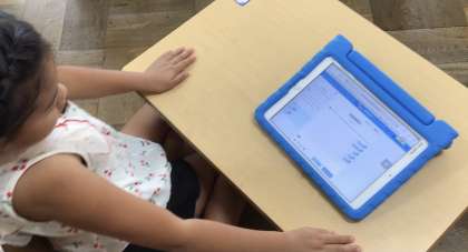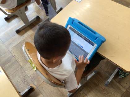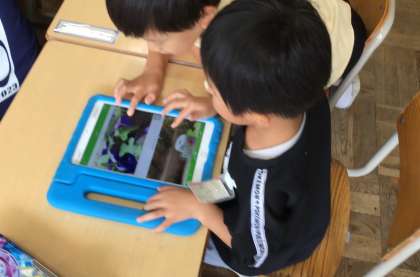 あさがおの花はどんな様子だったか、「色は?」「触った感じは?」などを思い出したり、観察日記アプリの写真を見て、スカイメニューの「気づきメモ」にたくさんメモしました。