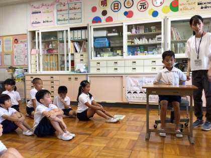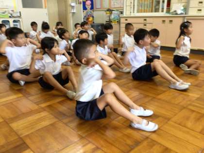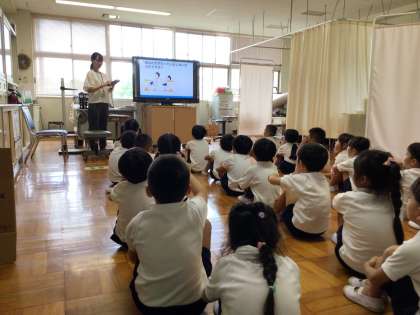 姿勢について考えよう 公開日 2023/09/05 更新日 2023/09/05 第1学年の様子 身体測定・視力検査の後、姿勢について勉強しました。悪い姿勢の例を見て、「ああ、たまにやっちゃうな」「お家だとついやっちゃう」と話していました。姿勢を良くするために「ぐるぐる回して1・2・3」のリズムで体操をしました。4時間目の国語では、姿勢に気をつけてひらがなの学習をしていました。 1年