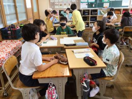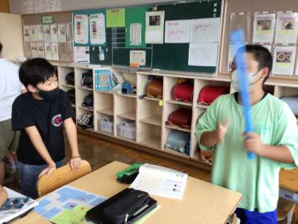 9/8 キャンプの旗を作りました。その1 公開日 2023/09/09 更新日 2023/09/09 第5学年の様子 キャンプの班が決まり、手旗を班ごとに作成しました。 話し合いは、国語で学んだ問題解決のための話し合いの仕方を活用しました。 キャンプまでに全班旗を完成したいです。 5年