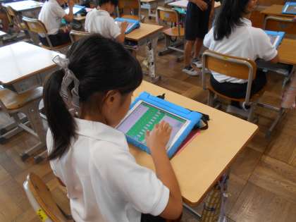 「エムボット」というプログラミングソフトの学習を始めました。自分で作ったものを友達と見せ合いました。