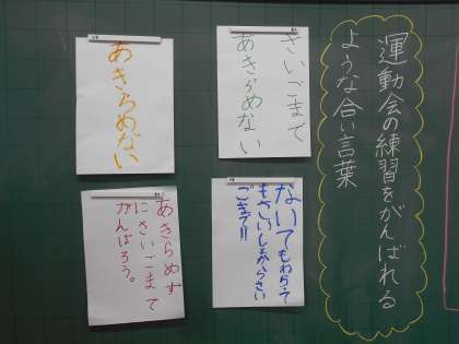 運動会の練習でがんばれるようなグループの合い言葉を話し合って決めました。