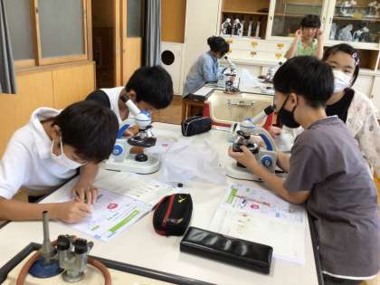 アサガオ、オシロイバナ、ナデシコなどの花粉を顕微鏡で観察しました。
