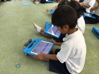 スクラッチJr.でねこを動かそう 公開日 2023/09/25 更新日 2023/09/25 第1学年の様子 ICT支援員の先生を招いて、スクラッチJr.の使い方を学習しました。ねこを動かすためにどのような「命令」が必要か考えました。 1年