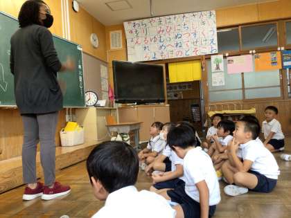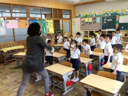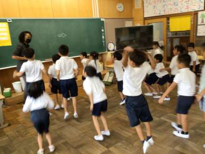 Right and Left! 公開日 2023/09/27 更新日 2023/09/27 第1学年の様子 通信でお知らせした予定を変更して、シャンティ先生の英語の授業をしました。 ダンスやゲームをしながら「Right and Left」を学習しました。 1年