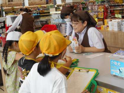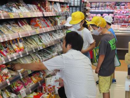 9/27 校外学習1 やまのぶ四郷店(3年) 公開日 2023/09/28 更新日 2023/09/28 第3学年の様子 社会科「店ではたらく人」の学習で、スーパーマーケットの工夫を見つけるために、「やまのぶ四郷店」へ見学に行きました。普段は見ることができないバックヤードを案内してもらったり、グループごとに売り場を探検したり、店長さん部長さんに質問したり、たくさんの工夫を見つけることができました。今後、グループごとに見つけたことをまとめていきます。
