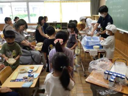 給食試食会 公開日 2023/09/28 更新日 2023/09/28 第1学年の様子 4月からできるようになったことの一つに給食の配膳があります。4月に比べ、自分たちでスムーズに準備・配膳できるようになりました。保護者の方に見ていただき、子どもたちの自信につながったと思います。お忙しい中お越しいただきありがとうございました。 1年