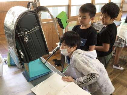 算数では「重さ」を学習しています。秤の使い方や目盛りの読み方を学習した後、身の回りのものの重さを量りました。