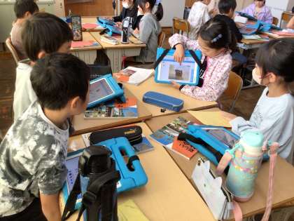 今日の社会の授業では、自身の家庭で取り組んでいる災害対策について調べてきたものを共有し、自分たちにどんなことができるかを考えました。ICTを活用しながらグループで話し合った後、班の代表者が全体に発表しました。友達が調べてきたものから新たな学びや疑問を見つけており、協働的に学習できていました。