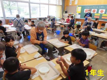 10/5 授業の様子 公開日 2023/10/05 更新日 2023/10/05 お知らせ 3時限目の様子です。 1年生は、講師を招いて「土だんご作り」をしていました。 3・4年生は、「リレーの練習」をしていました。 5年生は、「社会科」で、食の安全性の学習をしていました。