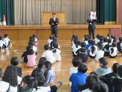 10/6 前期終業式 公開日 2023/10/06 更新日 2023/10/06 お知らせ 3時限目に全校が体育館に集まって終業式を行いました。 校長先生の話の後に、各委員会が委員長を中心に前期の活動の成果と後期の取り組みについて話をしました。最後に、各種の表彰者の紹介をしました。表彰は事前に校長室で行っていましたが、全校の前で紹介をして拍手で称えました。