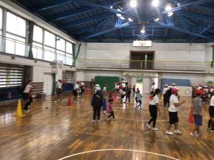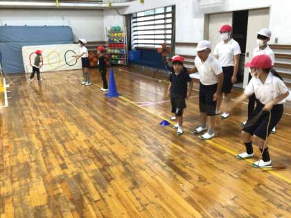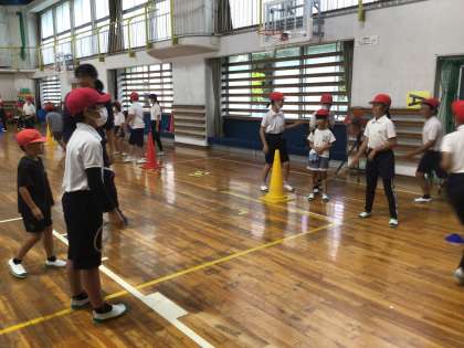 10/5 1年生と大縄跳び練習 公開日 2023/10/08 更新日 2023/10/08 第6学年の様子 1年生と一緒に、運動会で行う「スマイル班縄跳び」の練習を行いました。「跳ばせてあげられる回し手」目指して頑張ります! 6年
