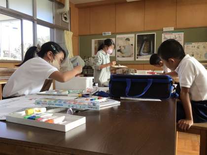 10月からの図工では、読書感想画に取り組んでいます。これまでに本を読み自分がお気に入りの場面を選びました。本の挿絵を見ながら真似するのではなく、自分がもつイメージで絵を描いています。