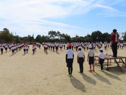 10/19 運動会(開閉会式)の練習 公開日 2023/10/19 更新日 2023/10/19 お知らせ 3時限目に、全校で開閉会式の練習をしました。 6年生が見本となり、短時間で動きと位置、姿勢を確認することができました。