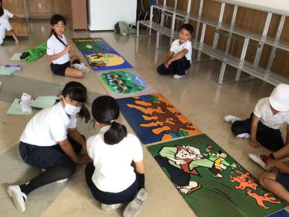 先日読んだ5つの昔話を、下学年に伝えるための準備スタートです。今日は各お話の担当ごとにどの場面を誰が担当するか決めました。