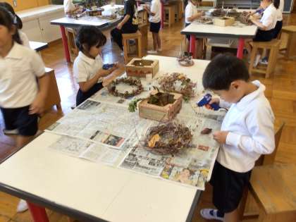 リースづくりの様子 その2です。