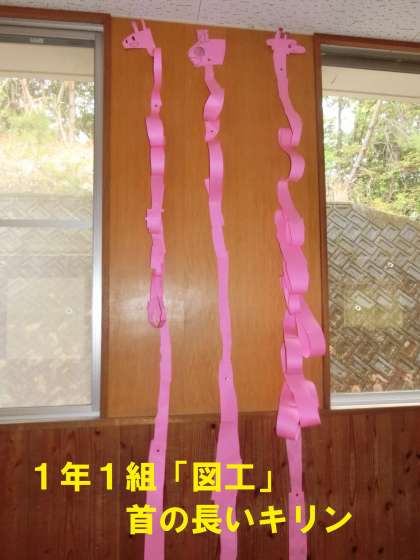1年1組生の図工は、個性あふれるキリンを作って掲示しました。