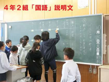 4年2組の国語は、段落のまとめを黒板に書いて意見交換をしていました。