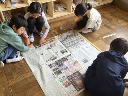 算数の授業では面積について勉強しています。これまでに四角形の面積の求め方を学習してきましたが、今日は1平方メートルの正方形を新聞紙で作り、その大きさを体感しました。「広さ」という概念を視覚的にとらえることができ、意欲的に学習に取り組めていました。