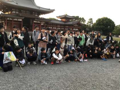 沈む夕陽をバックに、美しい平等院鳳凰堂を見学しました。