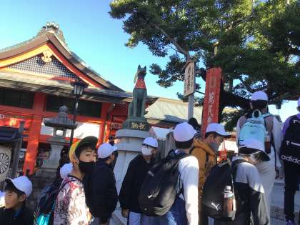 朝の伏見稲荷神社を散策しました。おもかる石を持ち上げてみました。