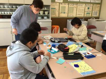 小物入れを作り終わった後、そのまま持って帰りたくなる子どもたちでした。