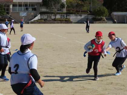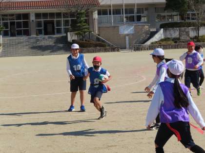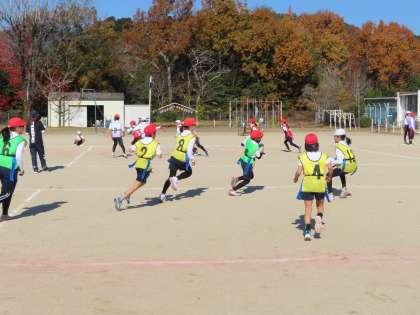 11/27 授業の様子 公開日 2023/11/27 更新日 2023/11/27 お知らせ 高学年の体育は「タグラグビー」を行っています。 5年生は、試合の中で声を掛け合って、ディフェンスやフォローの仕方を高めていました。