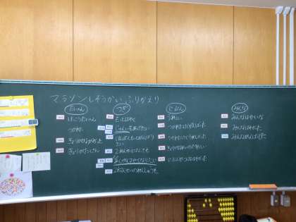 初めてのマラソン試走会を振り返りました。距離の長さに驚いたり,次への目標を立てたりする時間になりました。