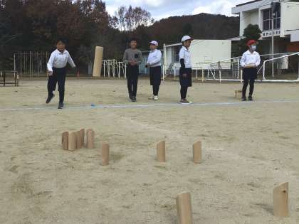 今日の体育ではモルックに挑戦しました。経験のある子どもを中心にルールを確認し合いながら、1組vs2組で何度かゲームをしました。見事なプレイをした時には歓声があがるなど、どのチームも盛り上がっていて楽しみながら体を動かすことができていました。