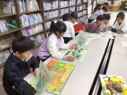鞍が池公園の動物を見てみよう 公開日 2023/11/30 更新日 2023/11/30 第1学年の様子 校外学習に向けた事前学習の様子です。鞍ヶ池公園の動物園内マップを見て,動物園の動物を図鑑で探しました。 1年