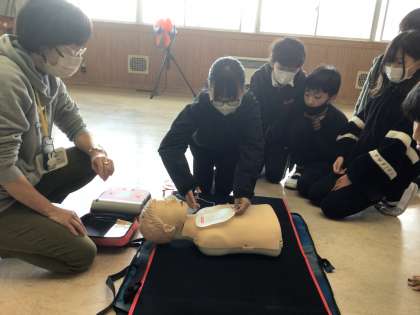 3時間目に救命講習を受けました。AEDの使い方、心肺蘇生法を学びました。