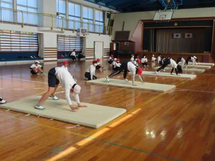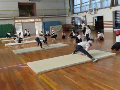 12/4 体育の授業 公開日 2023/12/04 更新日 2023/12/04 お知らせ マラソン記録会も終わり、体育の授業はマット、跳び箱を行っていきます。 体育館は冷えますが風がないので、マットの上で体を動かしているとすぐに温まってきて、みんな元気に活動していました。