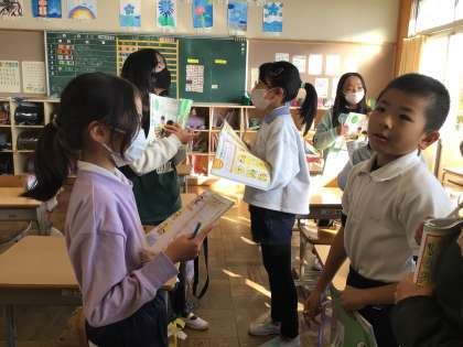 道徳の授業で「よいところさがし」をしました。まず自分の長所は何かを考えましたが、すぐにたくさん見つけるのは難しく探すのに時間がかかる子もいました。その後ビンゴゲームを通して友達に長所を言ってもらうと、自分が短所だと思っていたことが長所であったり、思いもよらない長所を見つけてもらえたりと驚いていました。