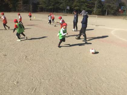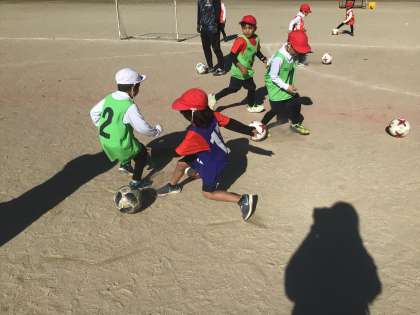 「グ・ラ・ン・パ・ス」のリズムに合わせtボールを止めたり,ドリブルしたりしました。