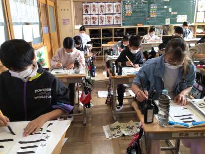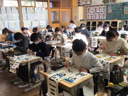 地域講師に来ていただき、書き初めの練習をしました。
