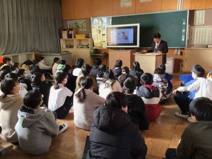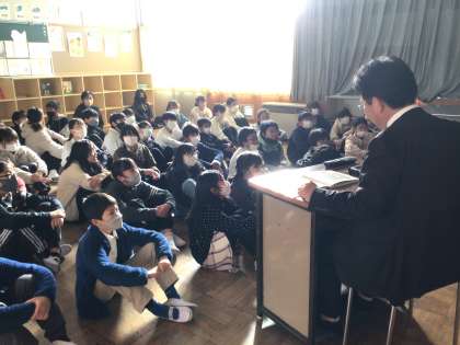 学年で読み聞かせを行いました。読んでくださったのはたのは、校長先生です。