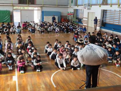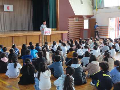 12/22 冬休み前集会 公開日 2023/12/22 更新日 2023/12/22 お知らせ 3時限目に体育館で集会を行いました。 校長講和の後、生活担当から冬休みの過ごし方の話をして校歌を歌いました。最後に先日校長室で表彰をした児童を紹介しました。 長期休業前の集会は、ほぼ同じ内容で進めていますが、集会を終えるといよいよ休みになるという気持ちが高まるようです。 校長先生のお話 ⇒ 学校だより9