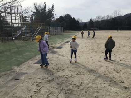 昔あそびの学習が始まりました。今日は3時間目にかるた,5時間目にかんぽっくりをしました。かんぽっくりで運動場や藤棚,遊具,砂場を冒険しました。